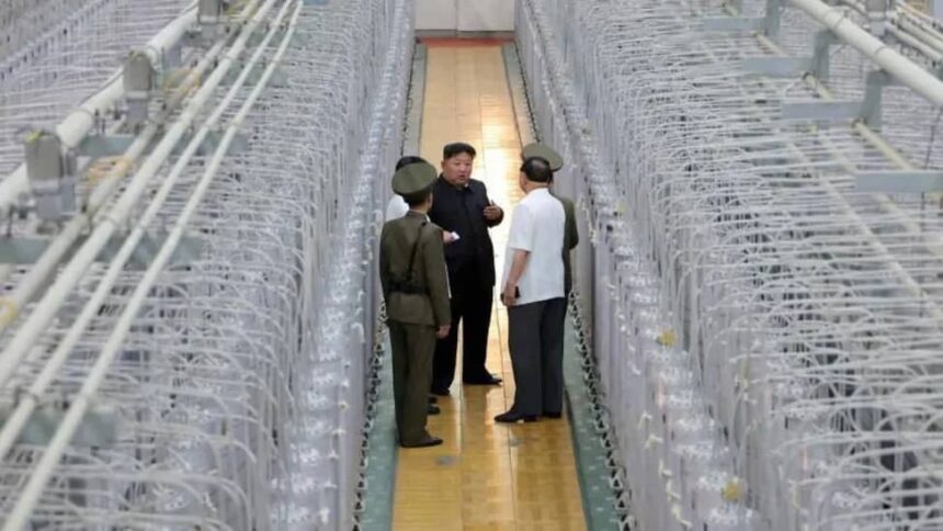 The photographs show Kim walking past rows of centrifuges and conversing with military officials, highlighting the facility’s role in manufacturing nuclear warheads. KCNA reported that Kim “felt strong” upon seeing the site and urged the facility to boost its production.