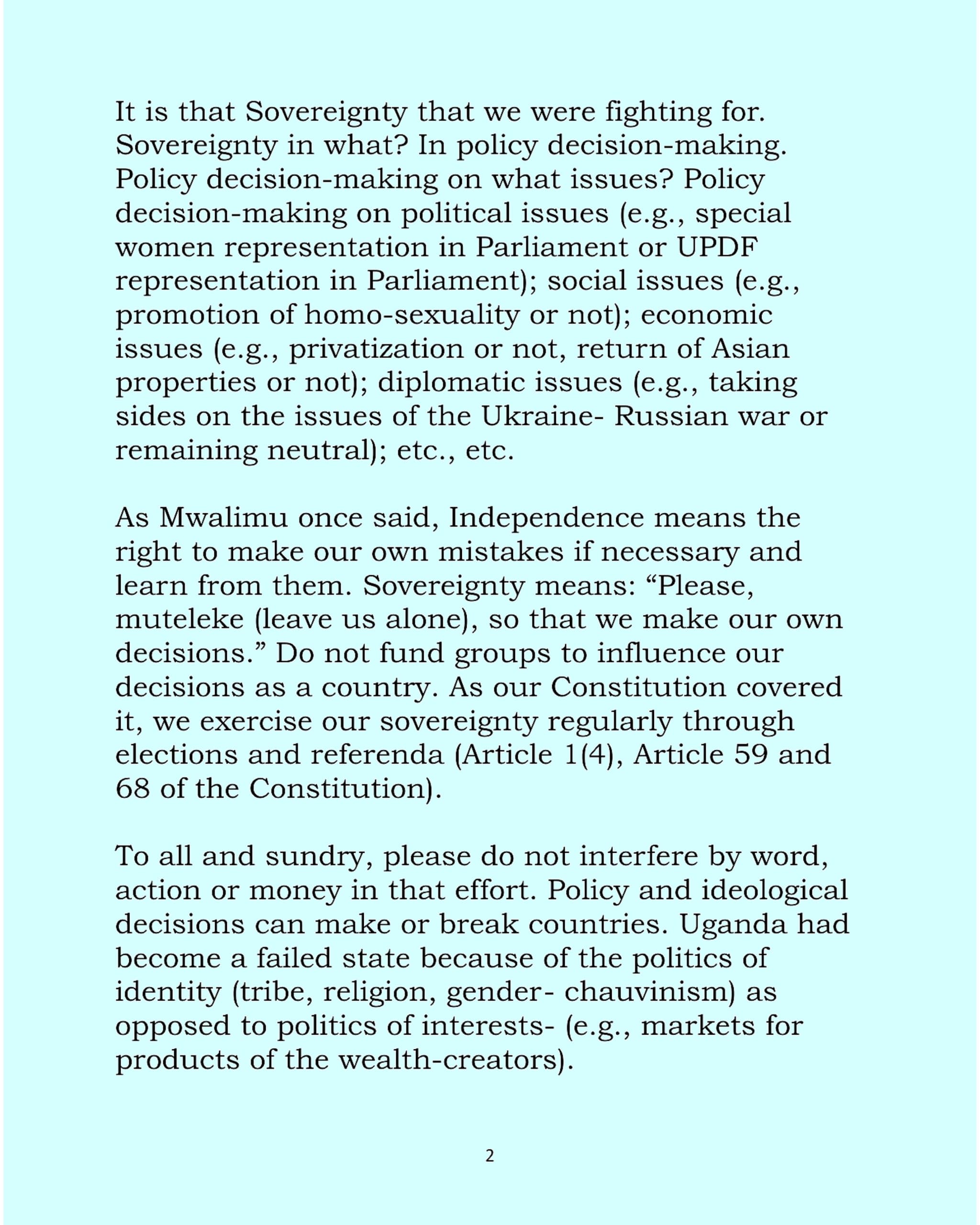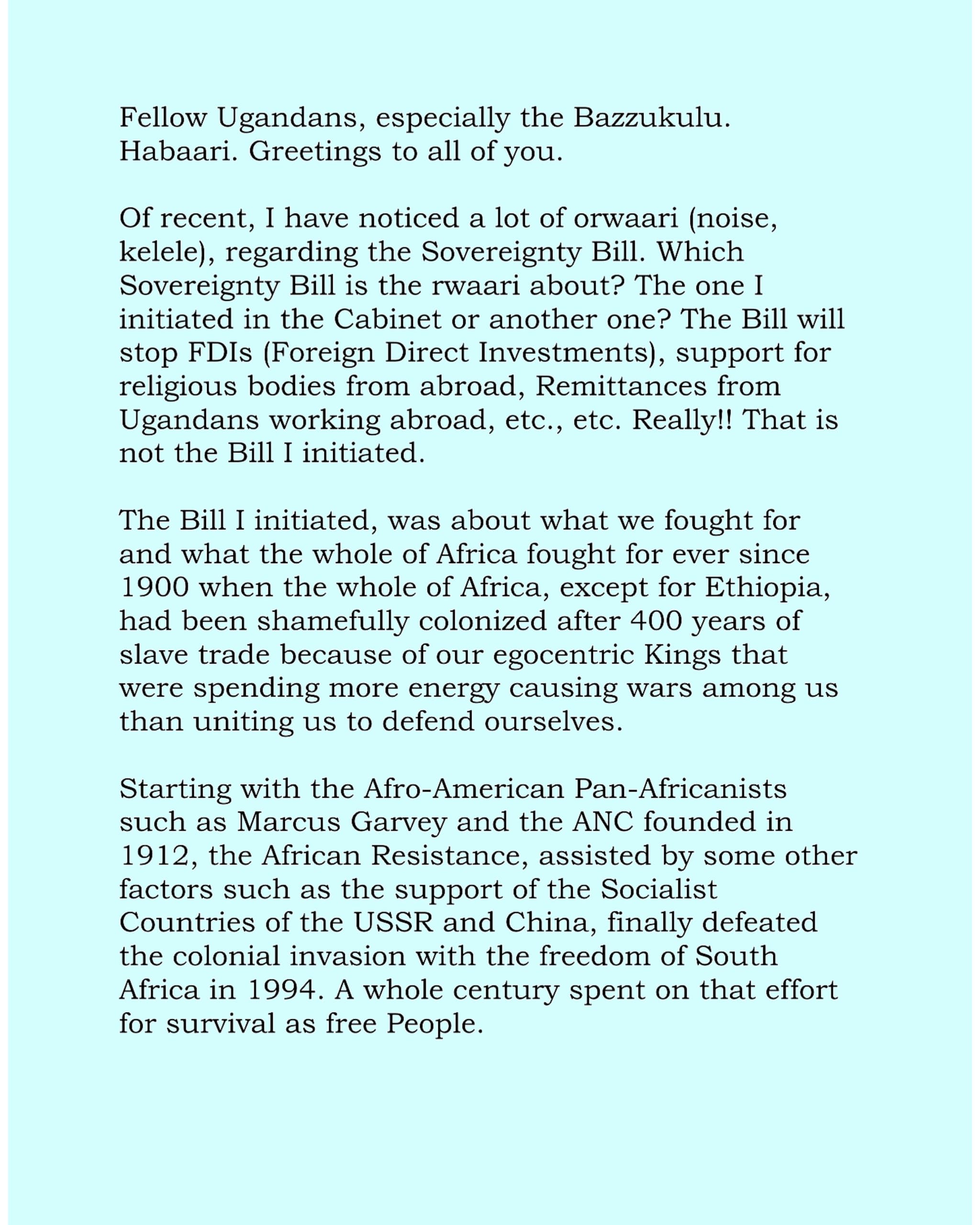 President Museveni has dismissed concerns about the Sovereignty Bill, saying it does not target investments, remittances, or religious funding, and suggests the public debate may be based on misinformation.